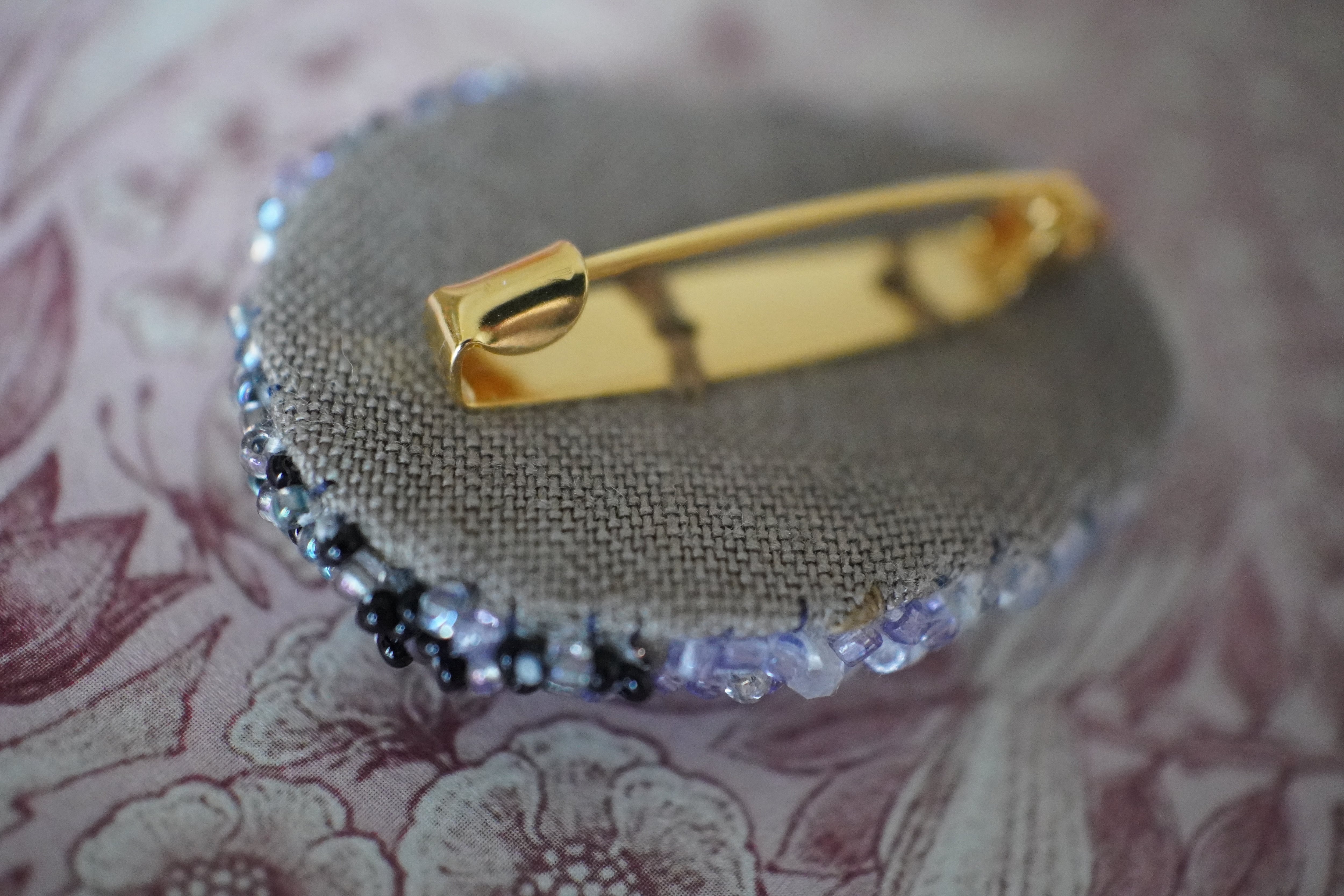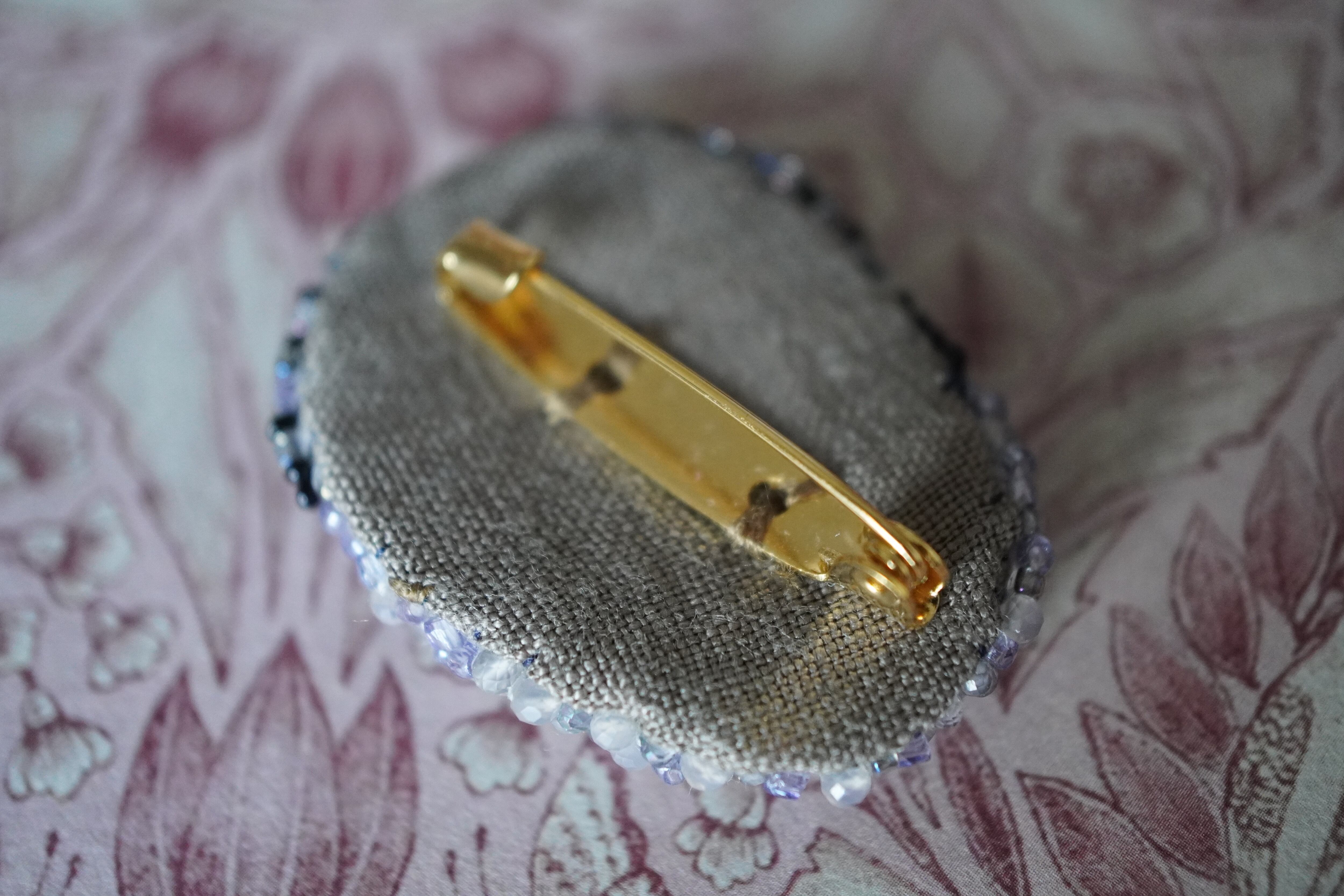 - 材質:ガラスビーズ、ビンテージビーズ、パール、ムーンストーン、トパーズ、リネン、フェルト、ポリエステル糸、刺繍糸、ブローチ金具