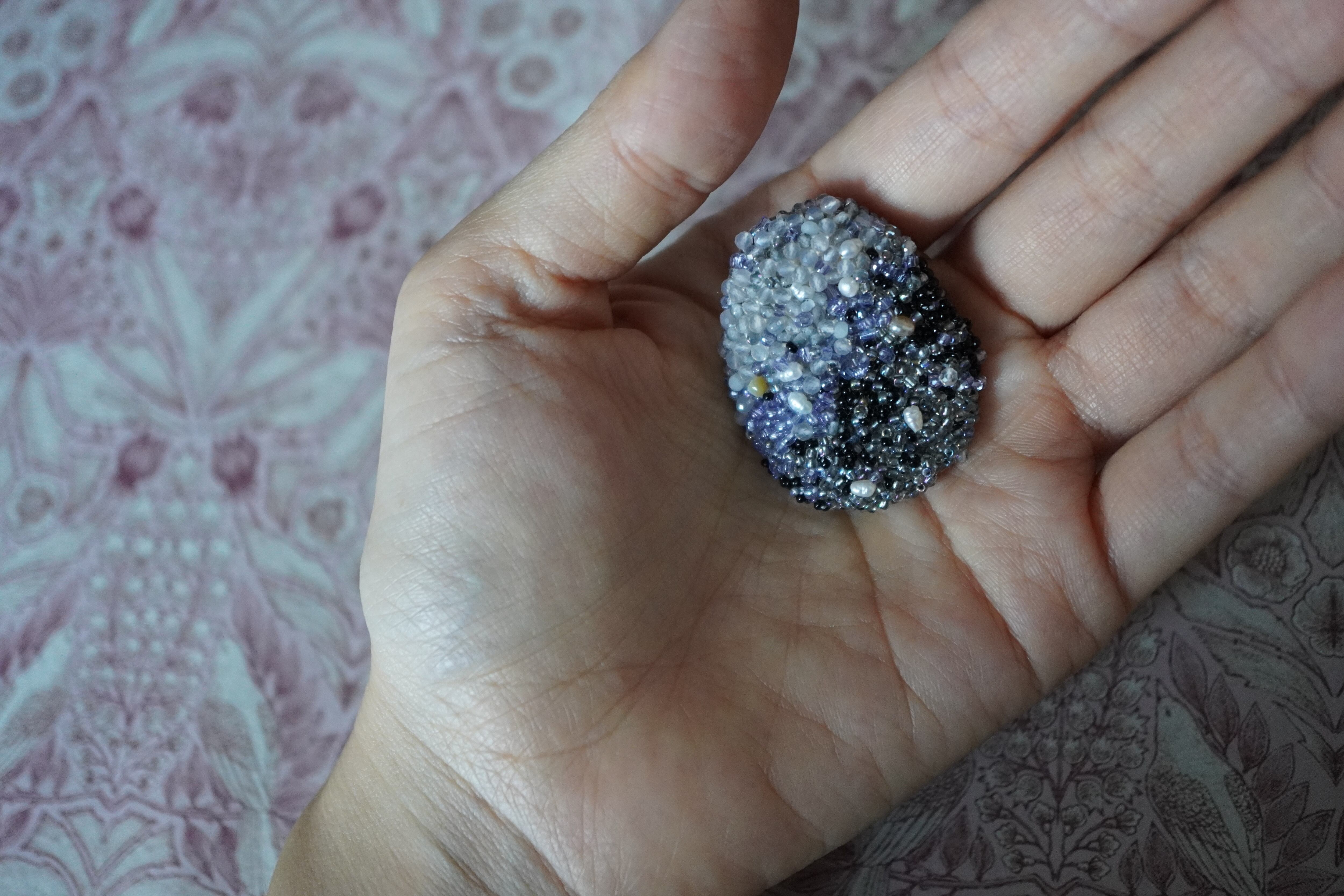 小さな輝きを集める様に刺して...星の河の様なブローチができました。