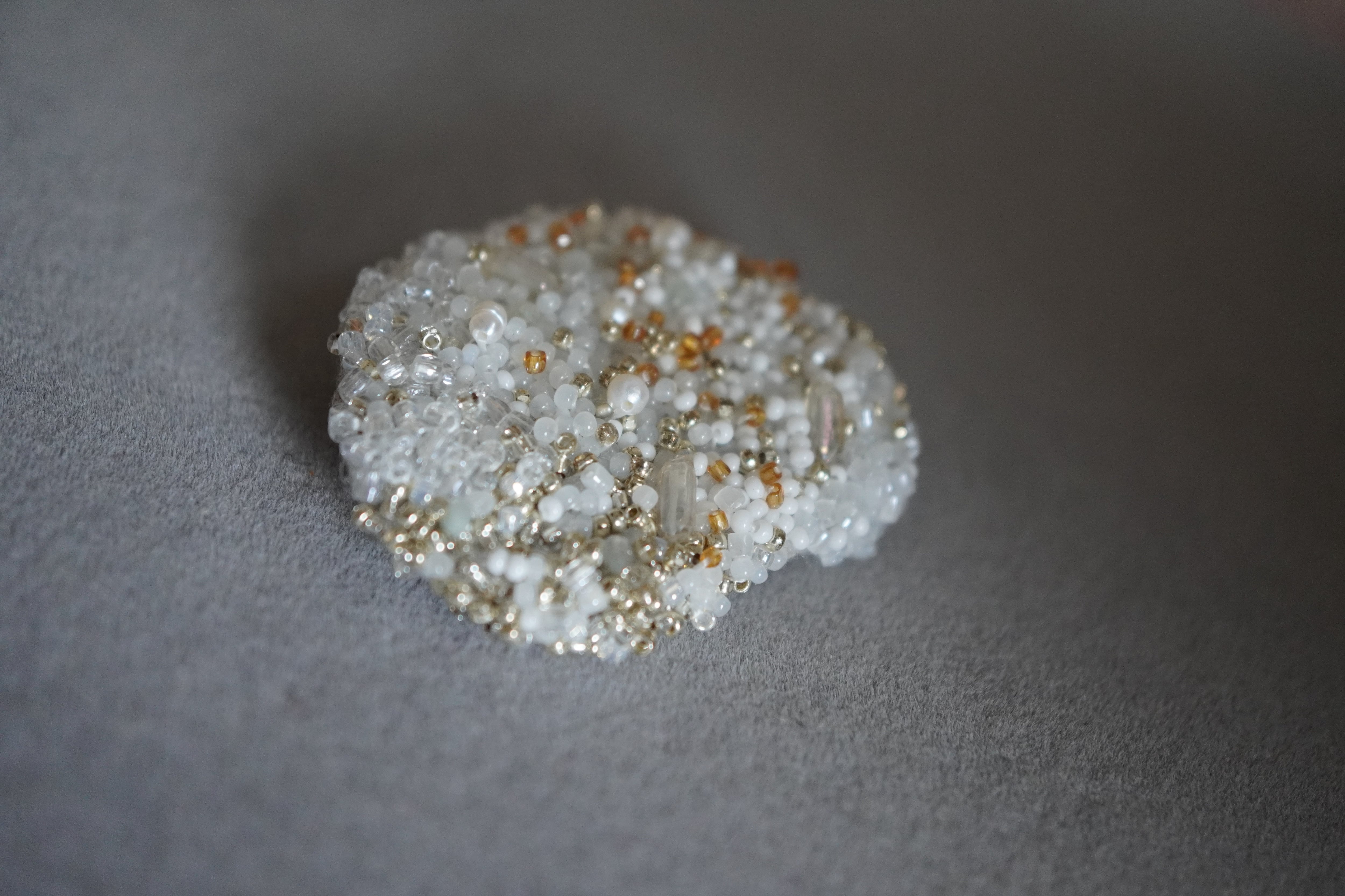 白やクリア、シルバーのガラスビーズをグラデーションになるように、繊細に。