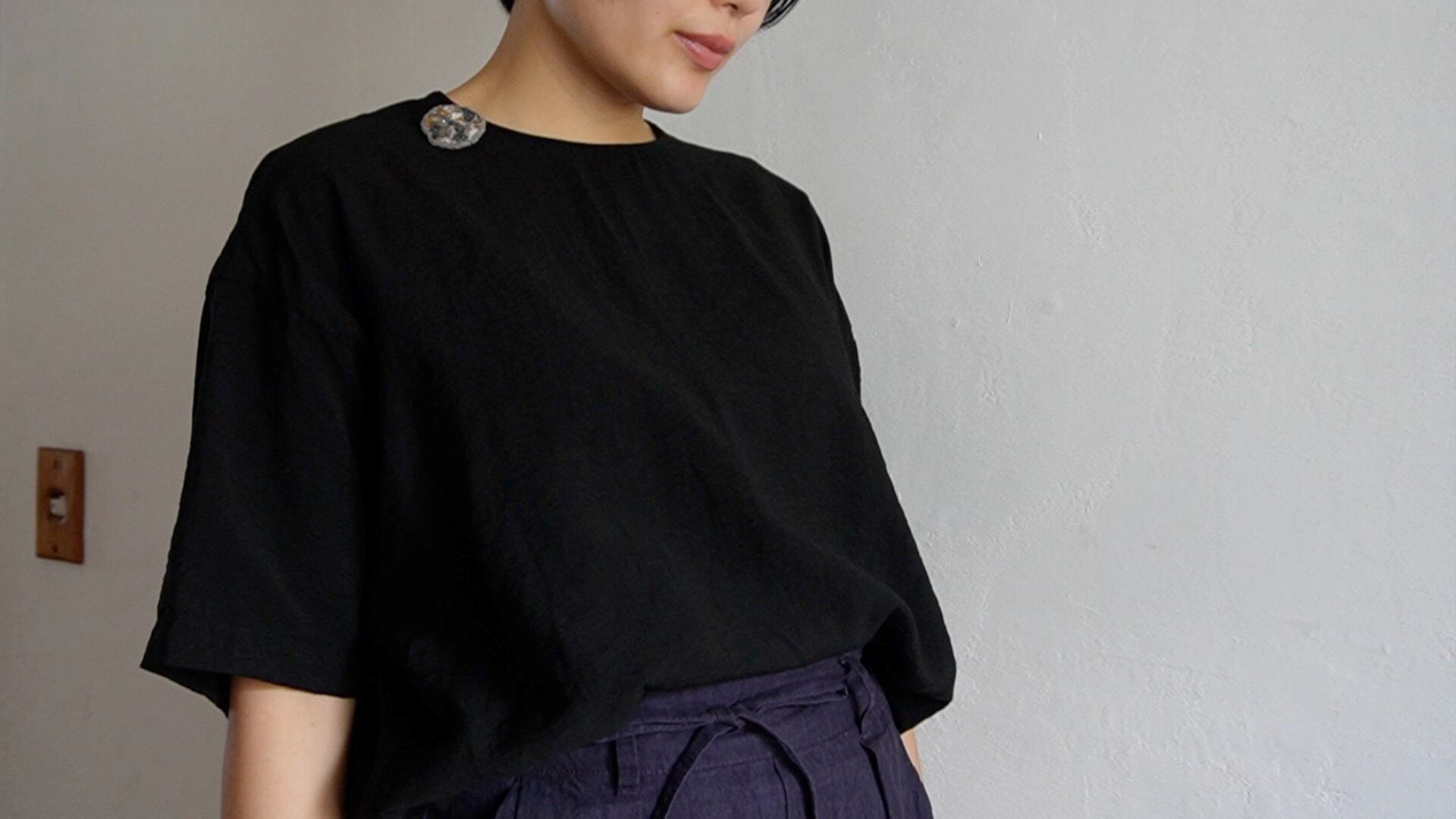 深みのあるトーン、手仕事ならではの、少し歪な形が装いにしっとりと馴染みます。