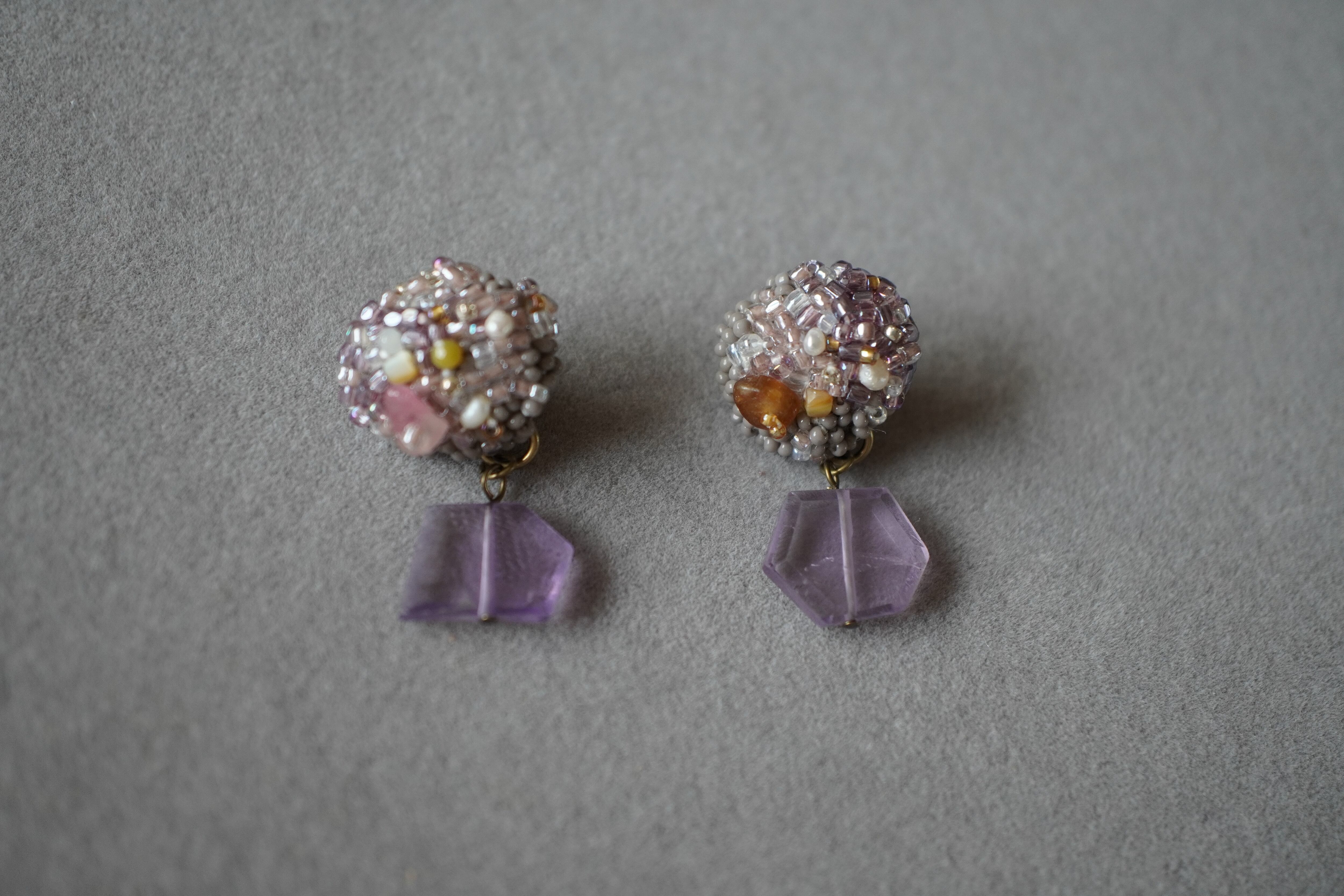 - 材質:ガラスビーズ、トルマリン、パール、イエローオパール、イエローシェル、翡翠、アメジスト、リネン、フェルト、ポリエステル糸、チタン(ピアス金具ポスト部分)