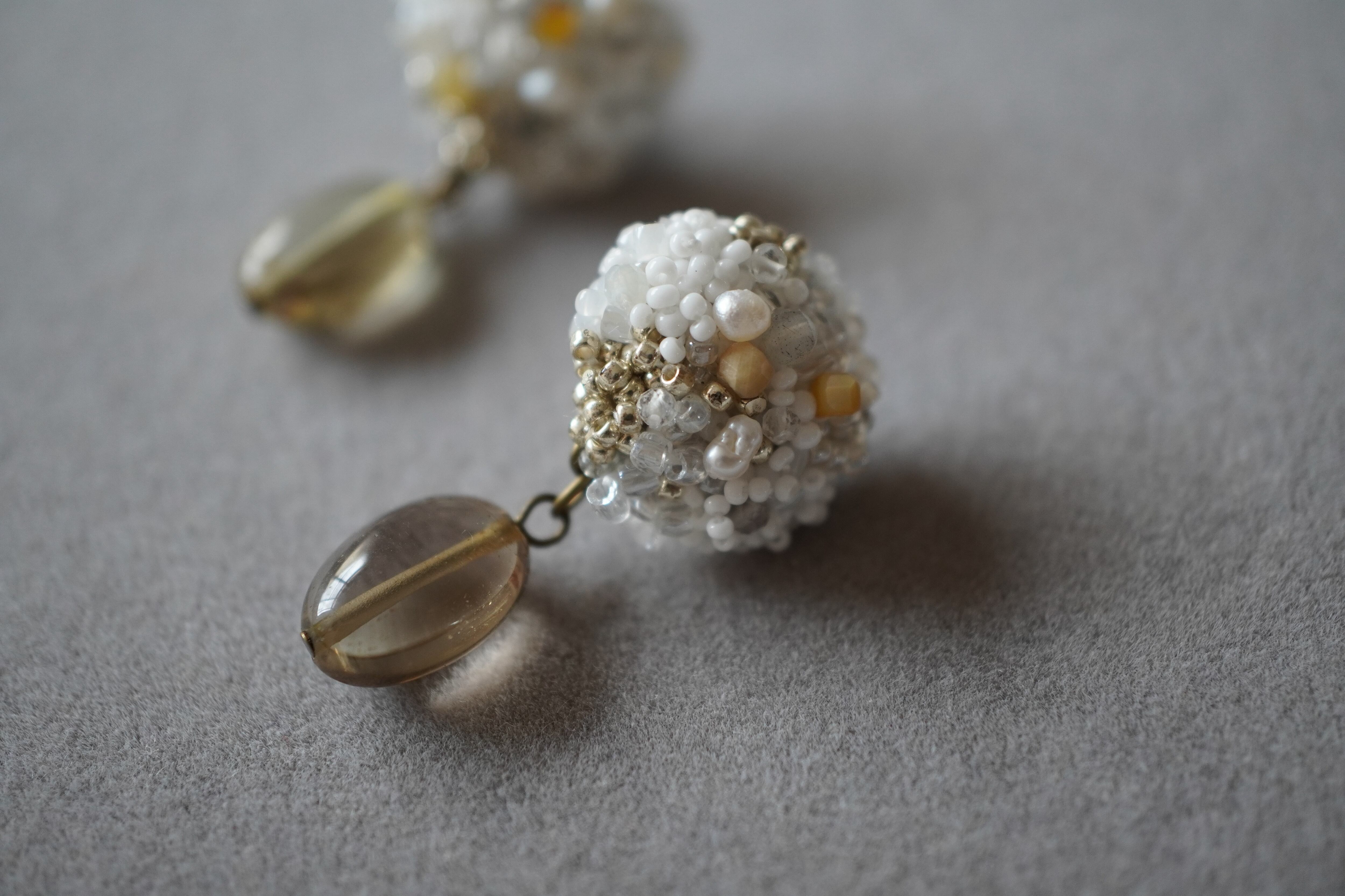 手刺繍でビーズを1粒1粒丁寧に刺繍した繊細なモチーフは、耳元にしっとりと馴染みます。