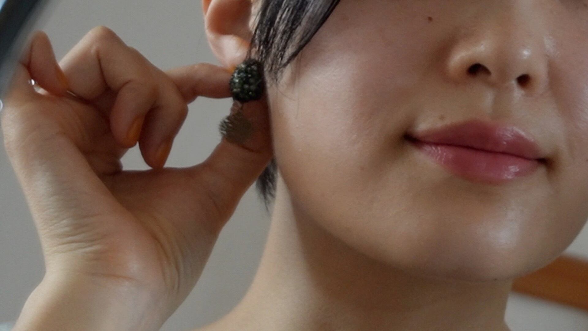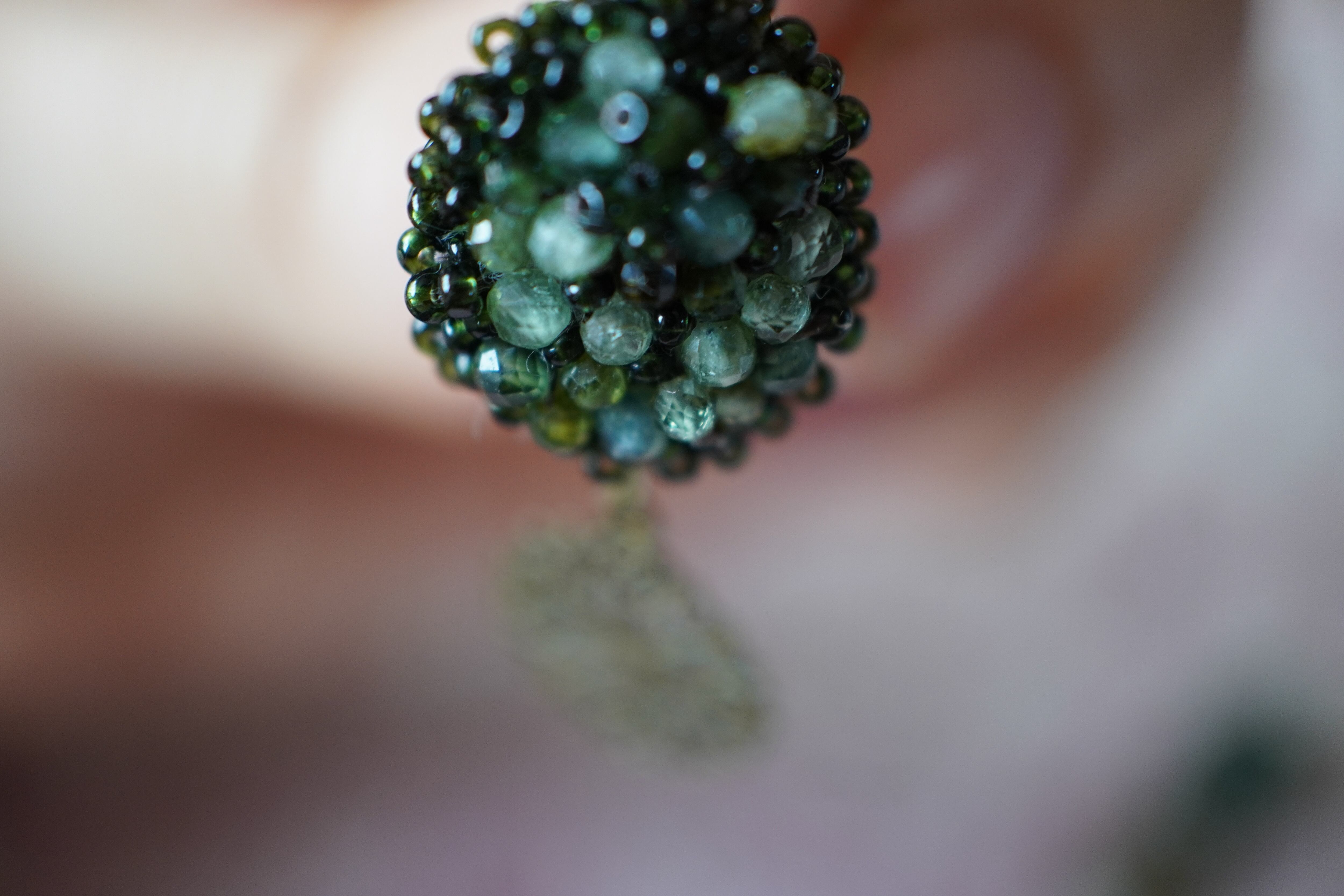 - 材質:グリーントルマリン、ガラスビーズ、ブラス、ポリエステル糸、チタン(ピアス金具ポスト部分)