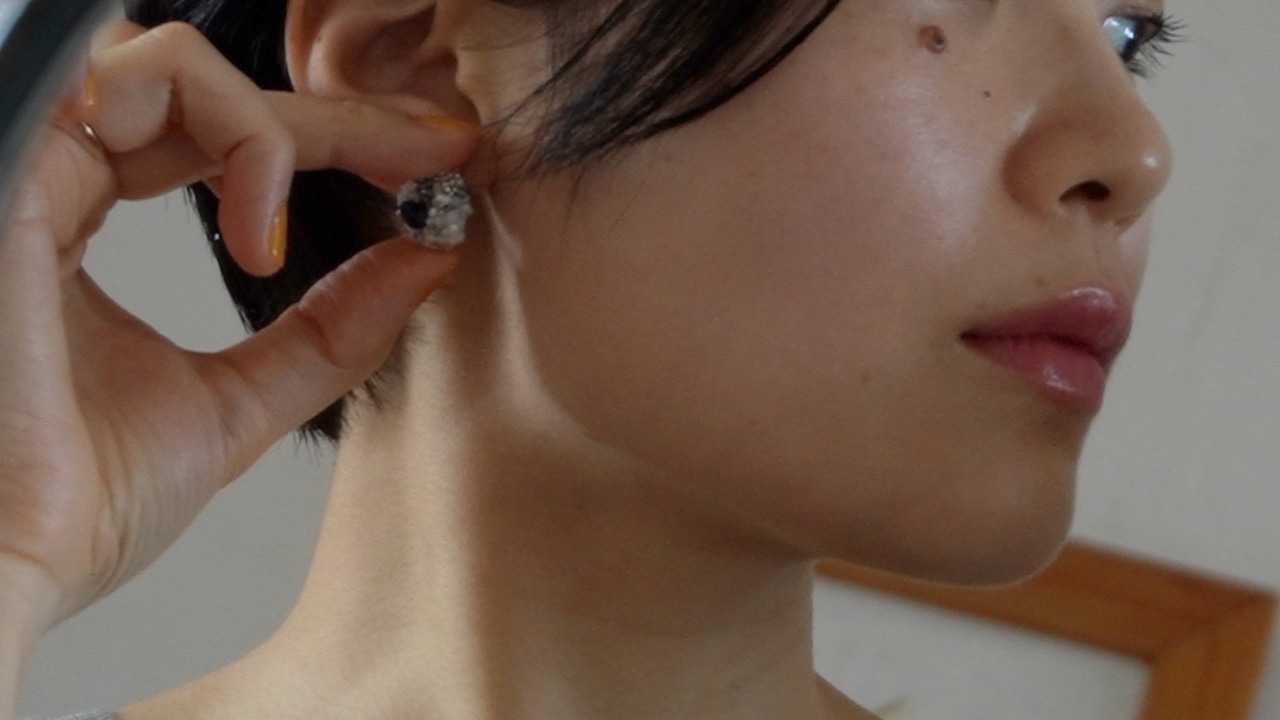 - 材質:ホワイトガラスビーズ、シルバーガラスビーズ、クリアガラスビーズ、ビンテージビーズパール、アイオライト、小粒天然石ビーズ、リネン、フェルト、ポリエステル糸、チタン(ピアス金具ポスト部分)