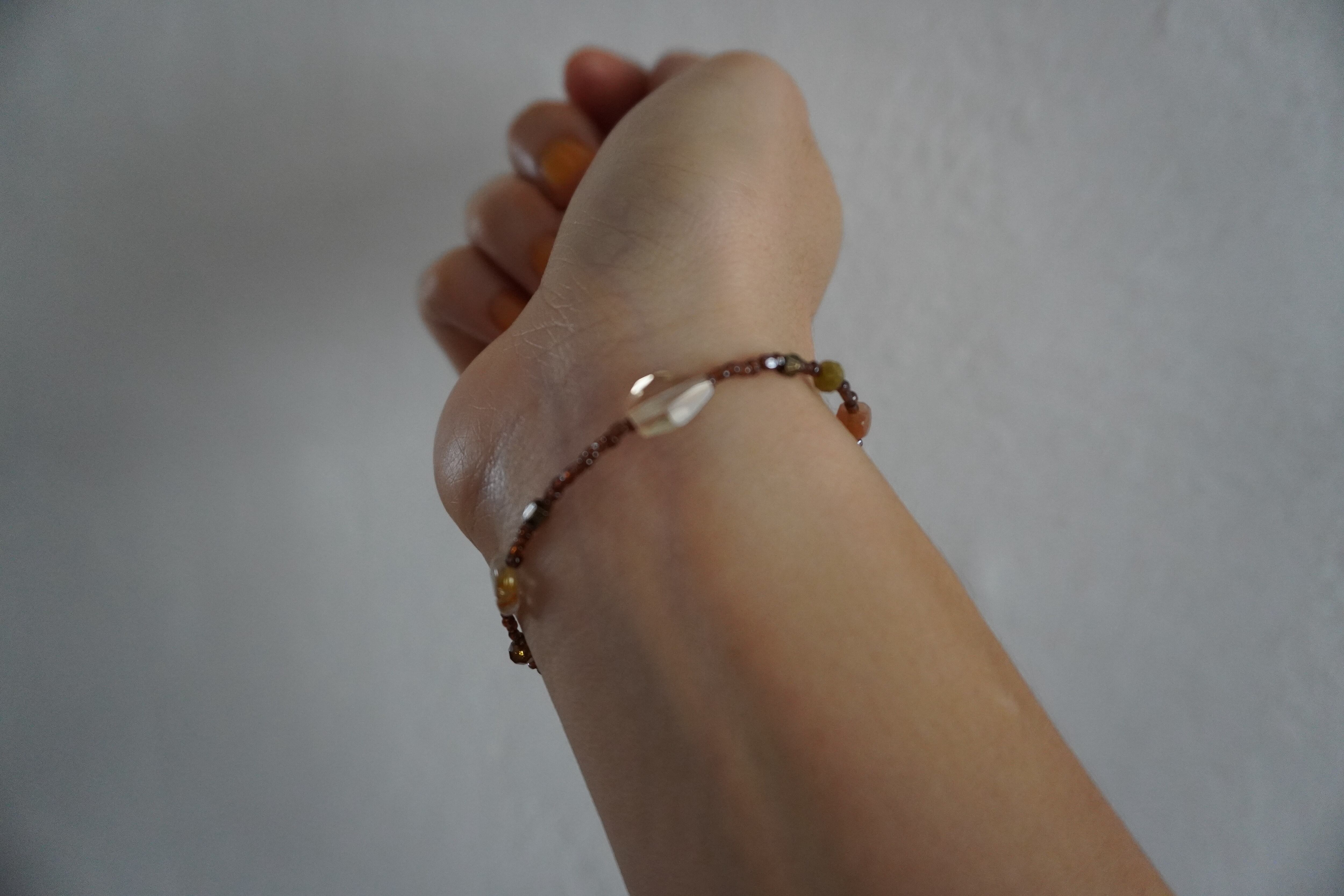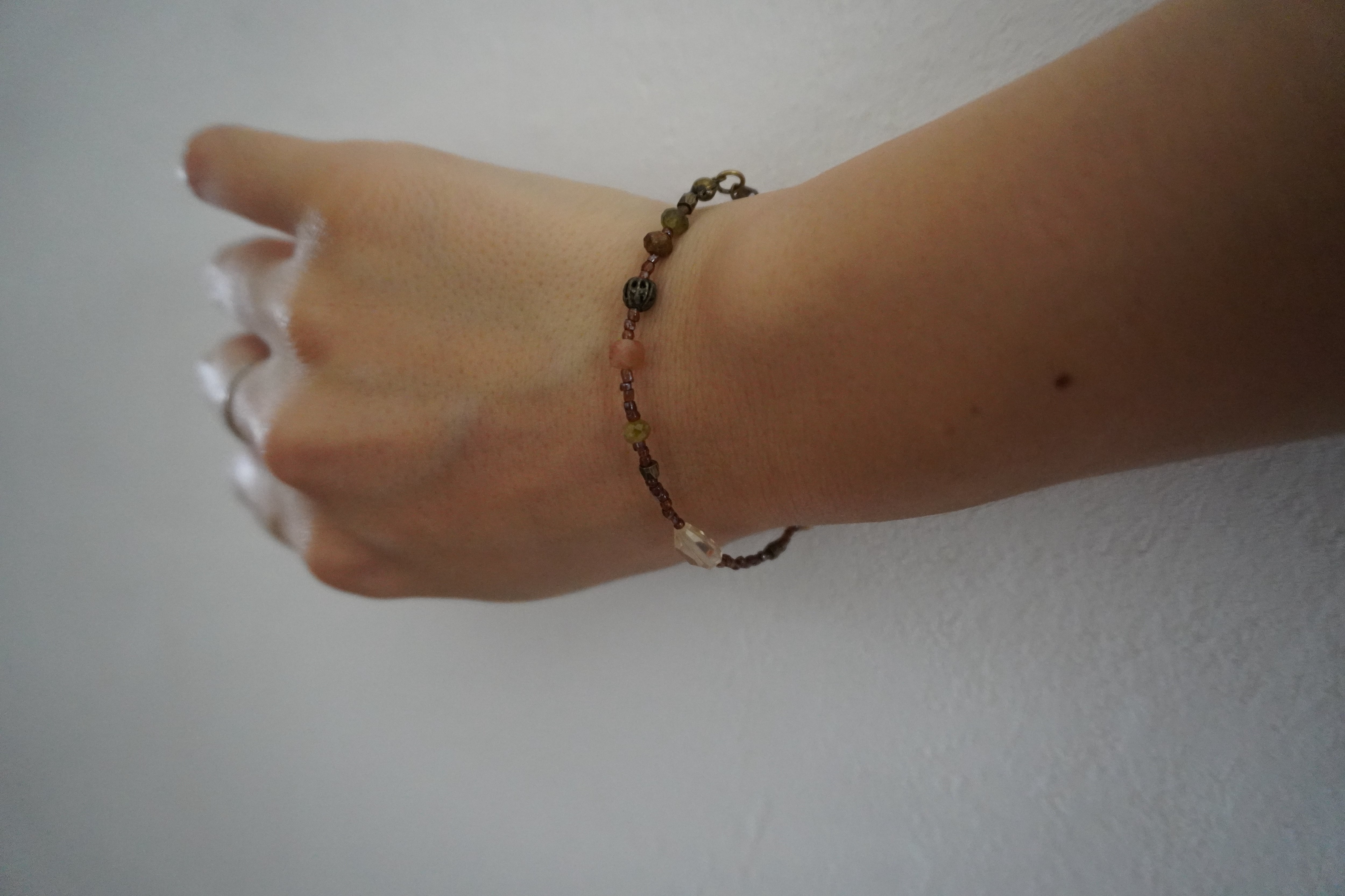 ビンテージビーズブレスレット(ブラウン×オレゴンサンストーン)